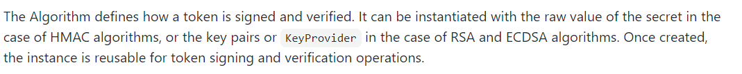 但是该方法标记了 @Deprecated,说明官方废除了这方法。我们只能直接调用第二个方法,所以传参需要我们自己指定 null 值,而且有些不了解 RS256 算法的人, 会同时传入公钥与私钥。